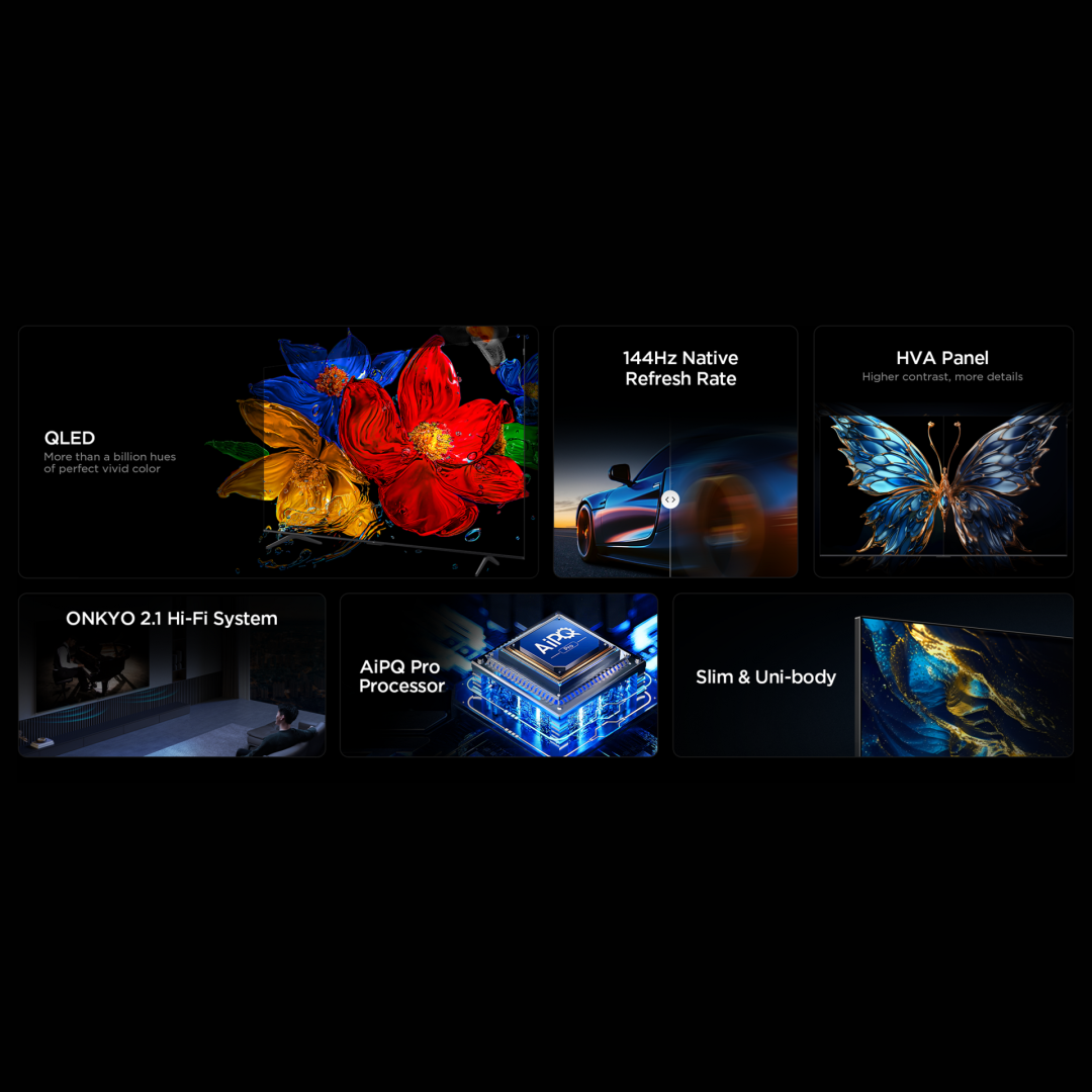 TCL’s self-developed AiPQ Pro Processor, incorporates numerous TCL’s unique image quality tuning algorithms. This chip has excellent intelligent sensing capabilities and can make pixel-level adjustments to the image quality, thus providing a top-notch viewing experience.